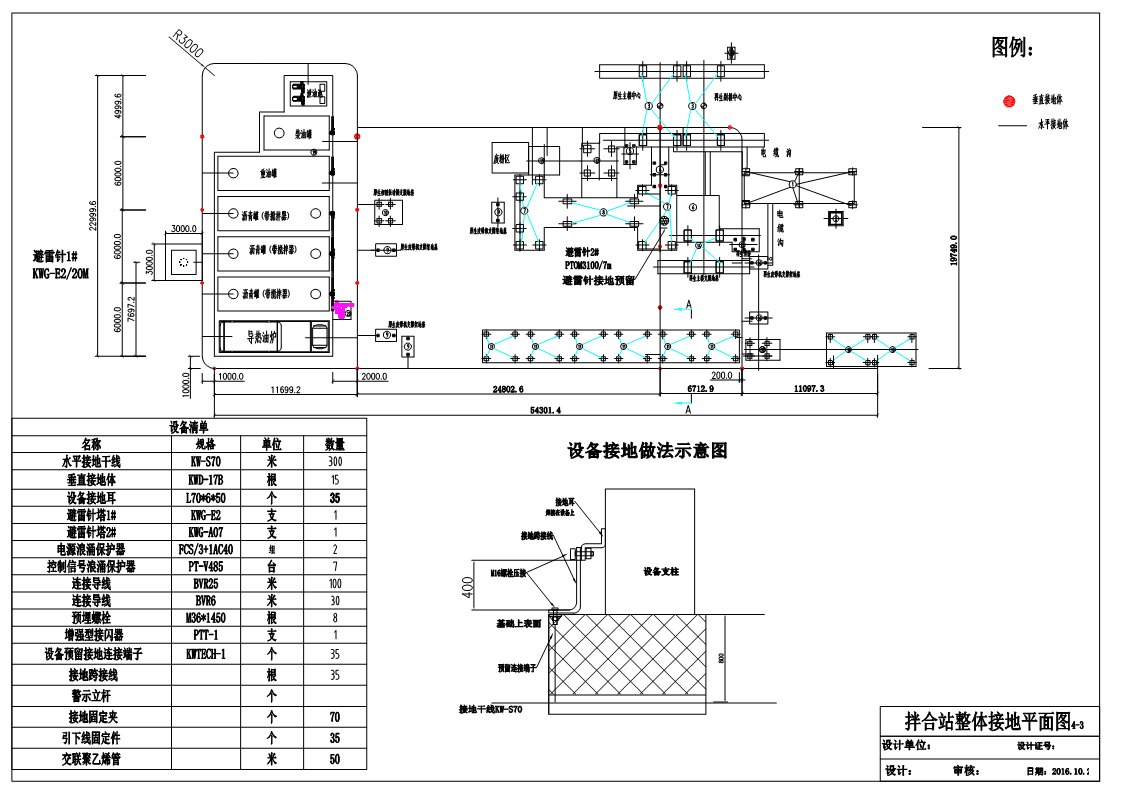 避雷针塔1#的基础混凝土为3立方,避雷针2#固定在设备最高处附近平台上。基础配筋见避雷针塔设计详图。2#避雷针设置单独的接地引下线。引下线应分段固定,并应以最短路径敷设到接地网,敷设应平整顺直、无急弯。焊接固定的焊缝应饱满无遗漏,螺栓固定应用防松零件(垫圈),焊接部分的防腐应完整。